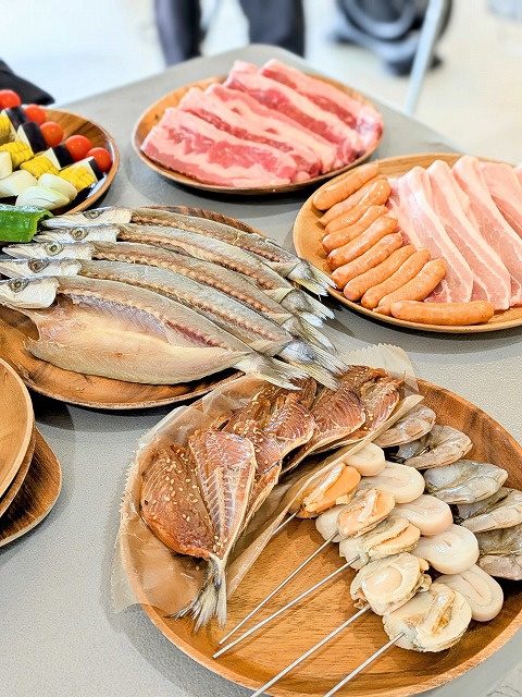 新鮮な魚介類だけではなく、豊富な種類のお肉にその他アラカルトが楽しめる満足感たっぷりのBBQ。